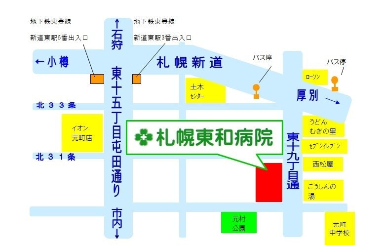 市営地下鉄東豊線 新道東駅下車、3番出入口より徒歩約12分又は